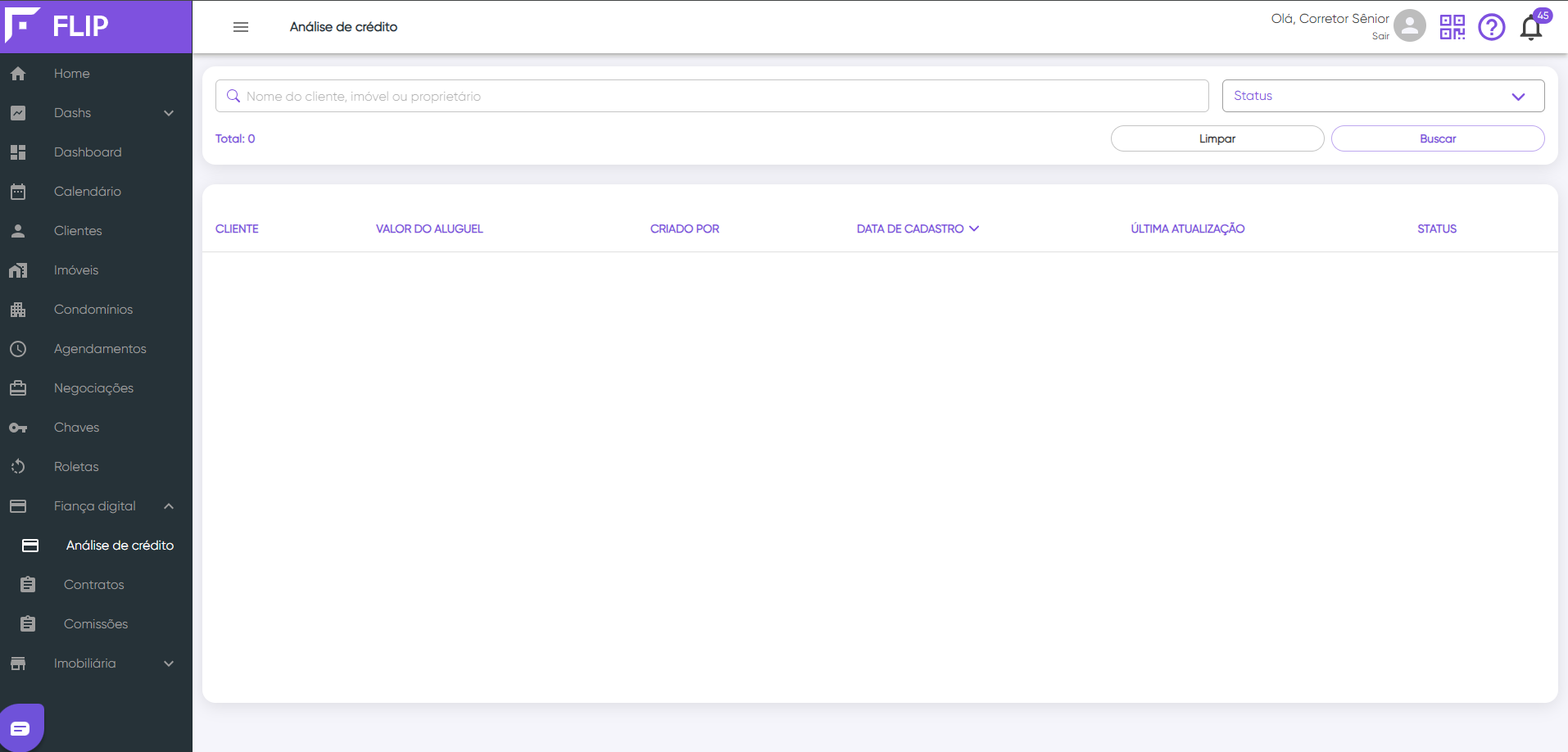 O corretor(a) sênior, tem acesso a home, a todas as métricas pessoais dele na home.
