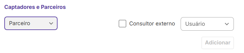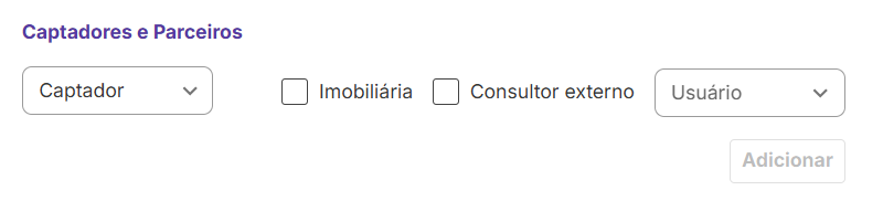 Ao adicionar um participante no imóvel um seletor permite escolher entre: